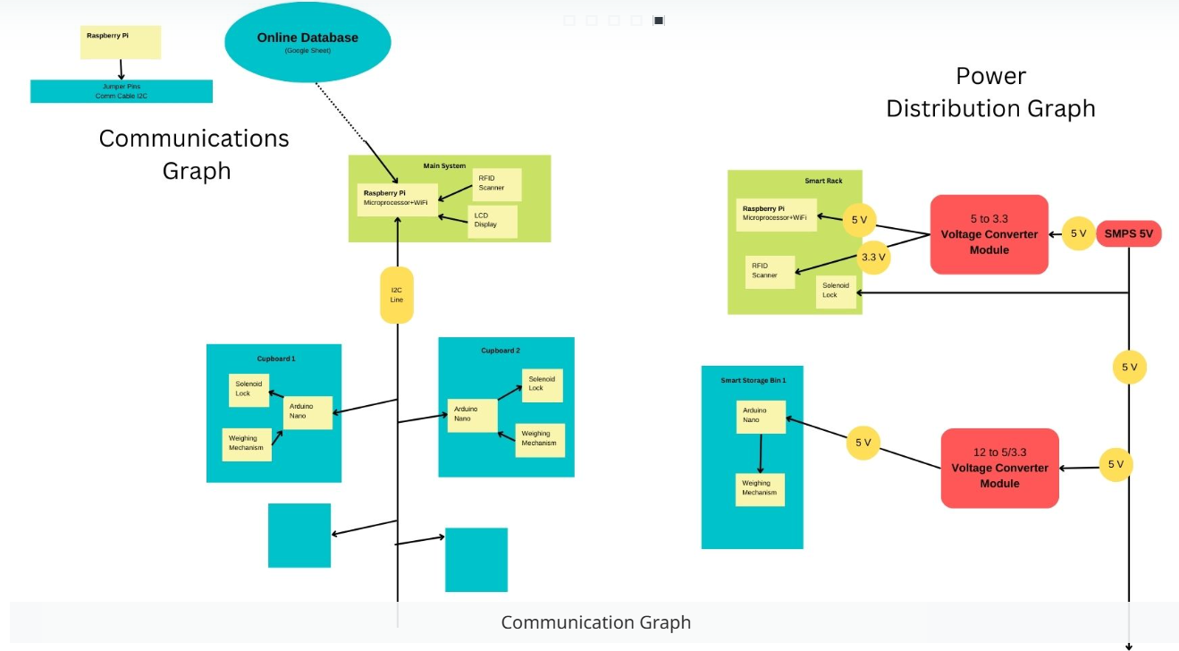 - Established calibration and dispensing protocols for seamless interaction, including I2C communication between Raspberry Pi and Arduino, noise reduction via averaged readings, and RFID user authentication.
